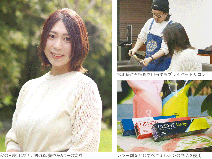 その後カットで古い髪さようなら。シルエットはスッキリと、髪は手ぐしもスルスル軽やか。あっという間に完成です!