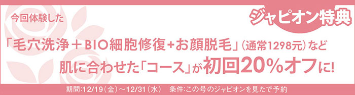 予算 「毛穴洗浄+保湿」(298元)、「VIO脱毛」(初回1000元)、「まつ毛パーマ」(初回198元)など