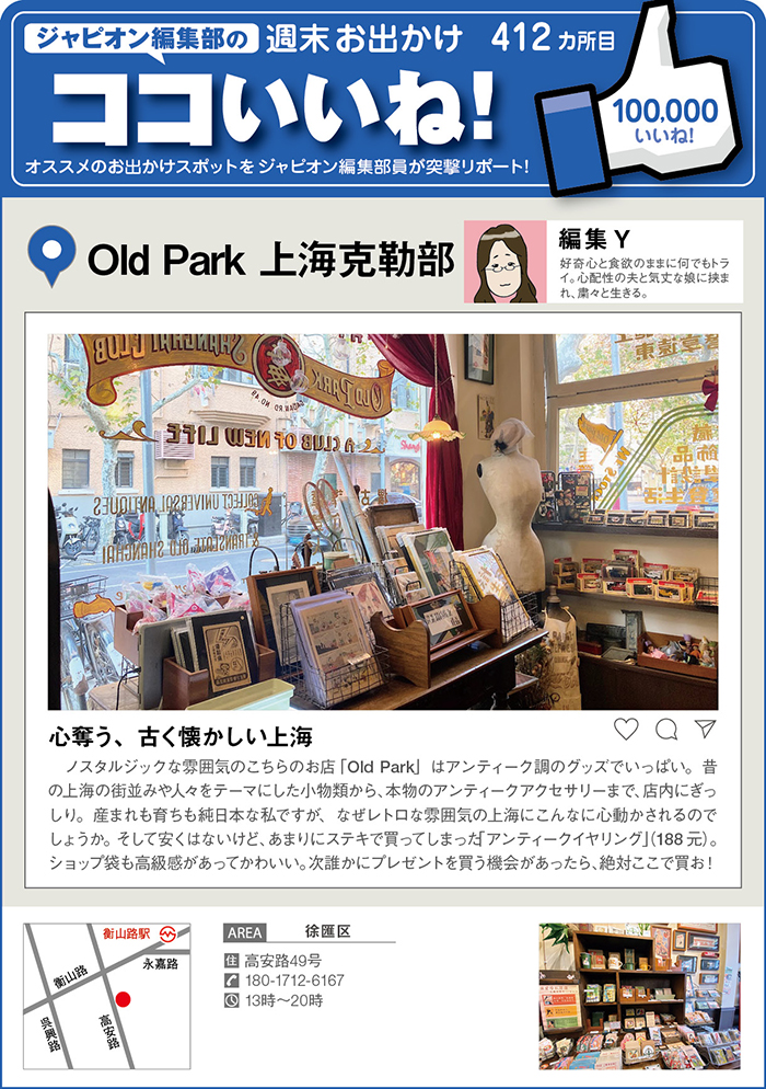 週末お出かけココいいね! 412カ所目「Old Park 上海克勒部」