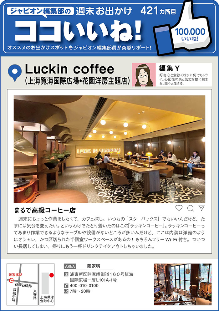 週末お出かけココいいね! 421カ所目「Luckin coffee (上海覧海国際広場・花園洋房主題店)」