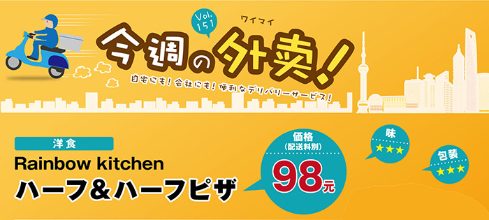 すっかり寒くなったこの季節、熱々のピザが食べたい! ということで「Rainbow kitchen」の「ハーフ&ハーフピザ」(98元)を頼みました。