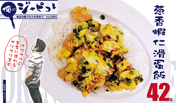 今回は「葱香蝦仁滑蛋飯」(42元)を注文。正直、メニューの写真よりは玉子少ない気もしたけど、付け合わせの醤油をチャチャッとかけて、デカいスプーンでパクッといってみた。そしたら卵がふわっふわで、エビもプリップリ! これ、なんぼでも食べられるやつや。