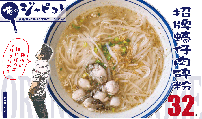 アプリ「大衆点評」の「必吃榜」に名を連ねる人気店へ、看板メニューの「招牌蠔仔肉砕粉」(32元)を目当てに行ってきたで。運ばれてきた器には、小ぶりながらもプリッとしたカキがどっさり。これはカキ好きにはたまらんビジュアルや。