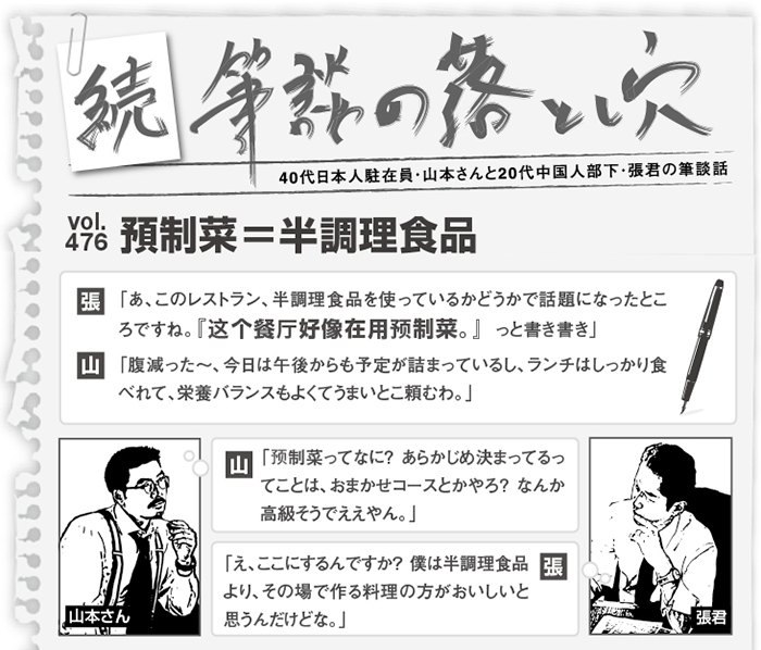 筆談中、張君は話題のレストランが「預制菜」を使っているかもしれないと伝えたかった。ところが山本さんは、言葉の響きから「おまかせコースのような高級料理」と勘違いし、うれしそうに店を選んでしまったようだ。山本さん! 料理ではなく中国語もおまかせになるよう、勉強して。