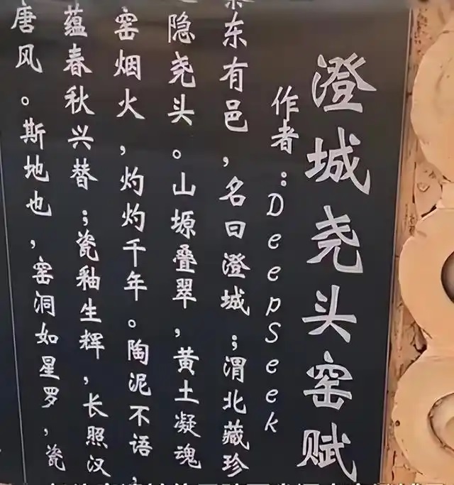 陝西省にある歴史的な遺跡観光地「堯頭窯(ぎょうとうよう)古鎮」で最近、「作者:ディープシーク」と刻まれた石碑が展示され、ネット上で話題になっている。