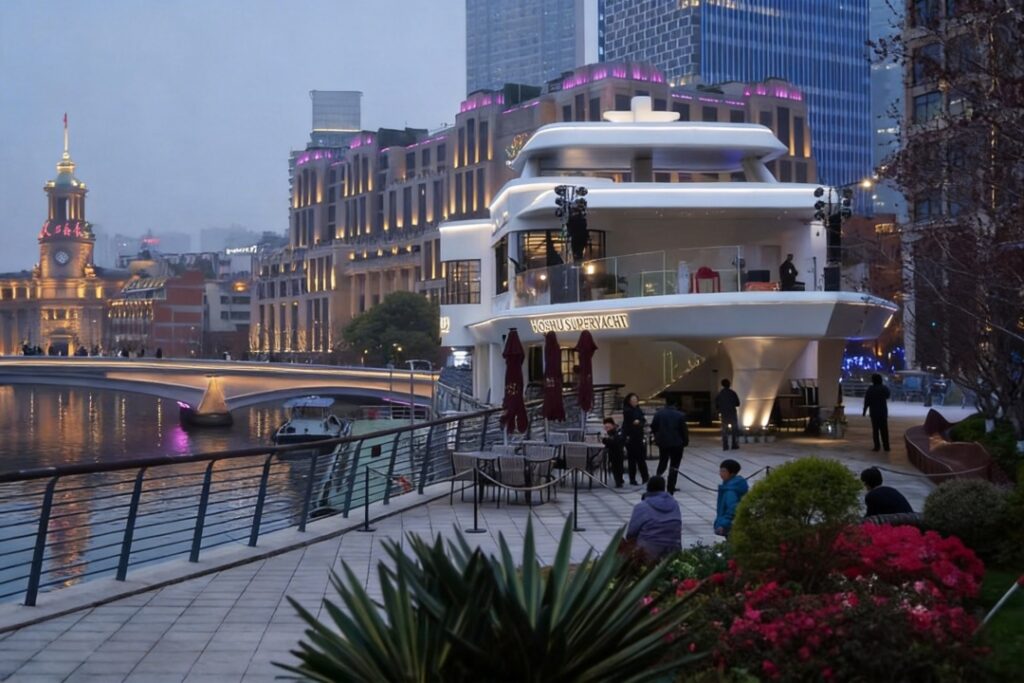 北外灘の蘇州河畔に最近、巨大な郵船を彷彿とさせる体験型複合書店「虹書舫」が開航した。